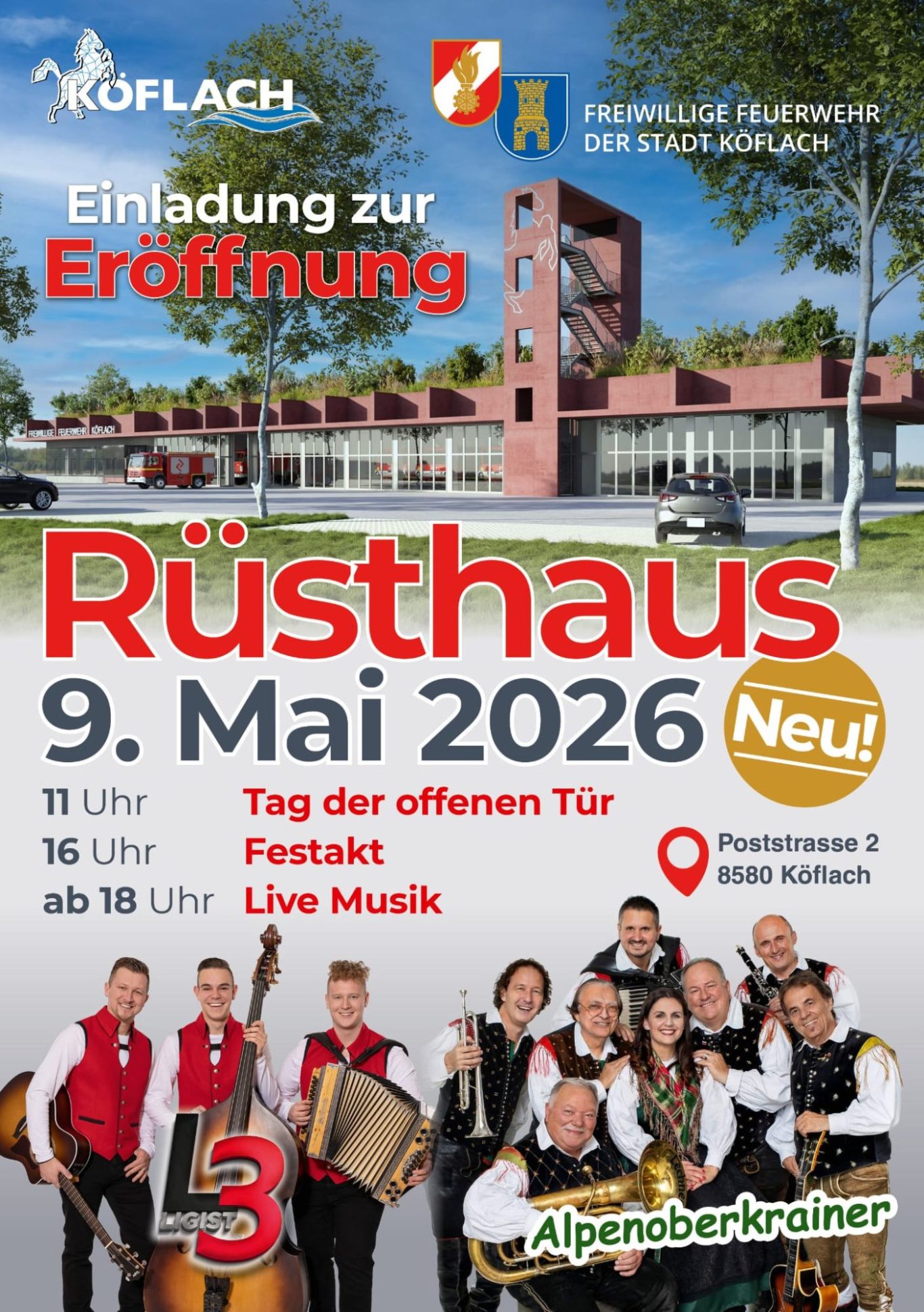 Am 9. Mai 2026 wird unser neues Rüsthaus offiziell eröffnet und seiner Bestimmung übergeben! 👨🚒